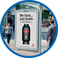 Cigarettecatchers™ chewing gum and cigarette bins can be placed wherever they are needed most, without cluttering the street - making it possible to offer convenient gum and cigarette litter disposal points and eliminate the excuse that there was "nowhere to put that gum or cigarette butt".